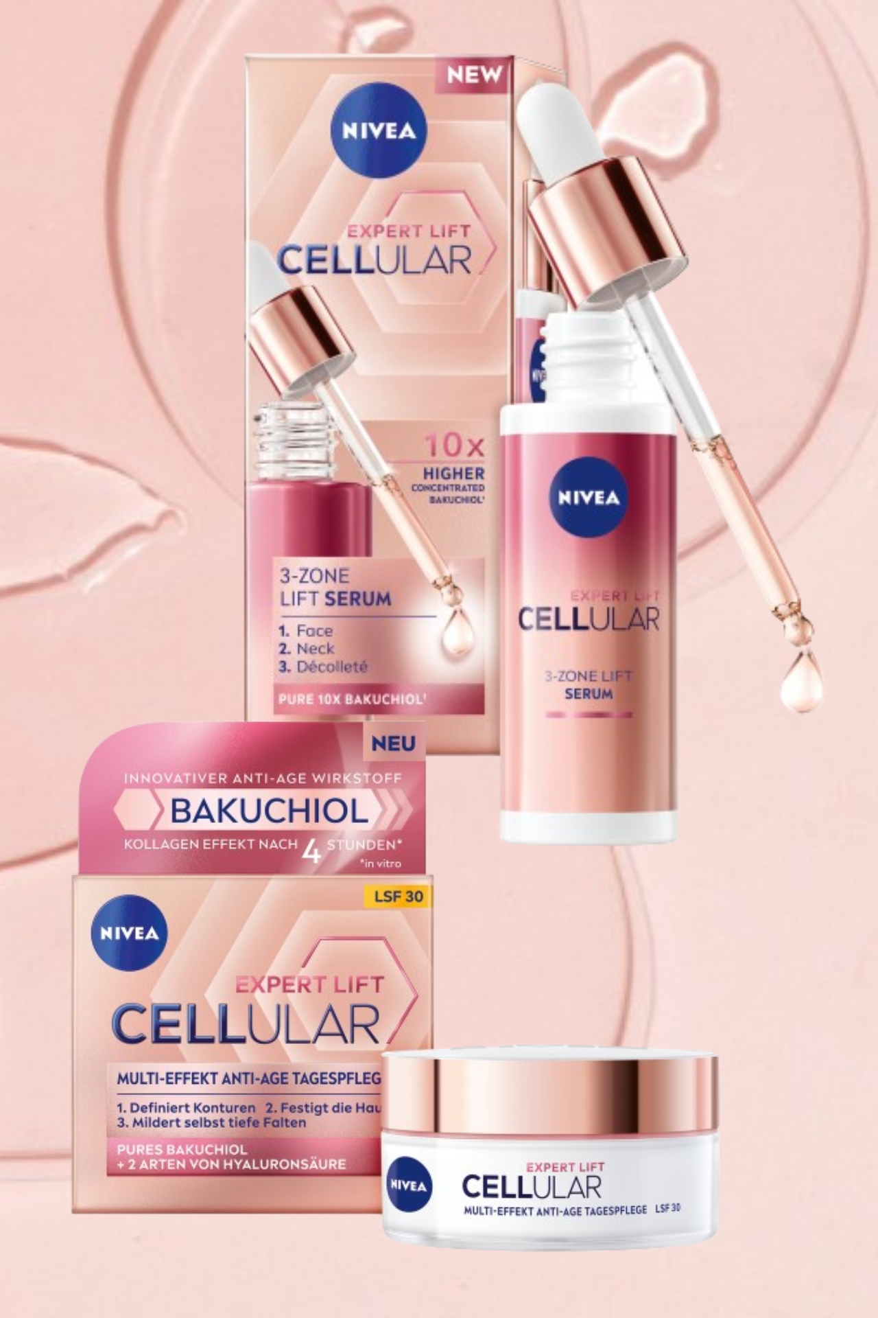 Es glättet die Haut, reduziert Falten und verbessert die Elastizität. Ergänzend versorgt die NIVEA CELLULAR Expert Lift Multi-Effekt Anti-Age Tagespflege mit Lichtschutzfaktor 30, die Haut mit einer Extra-Portion Feuchtigkeit.