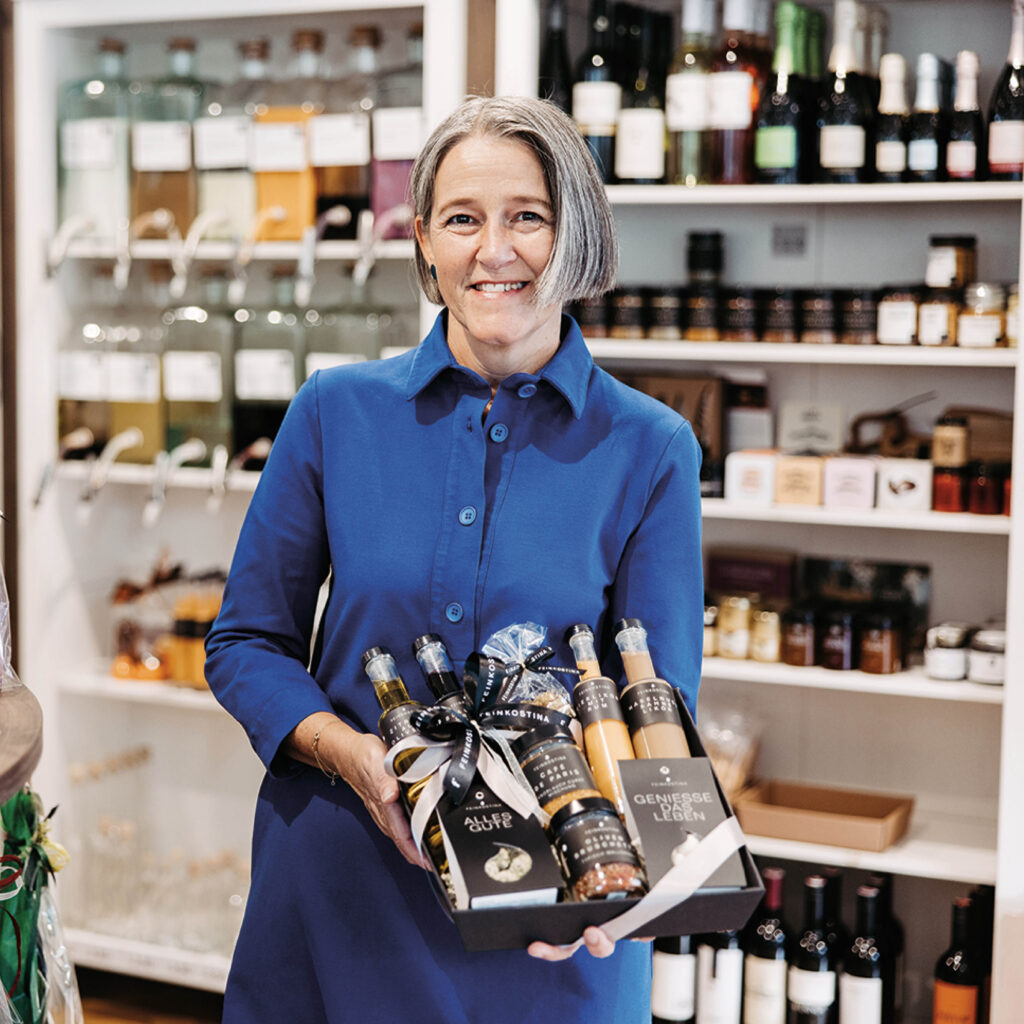 Mit einer beeindruckenden Vielfalt und kulinarischer Kreativität erfreut feinkostina ihre Kunden immer wieder aufs Neue. Hier findet man alles, was man sich in feinköstlicher Manier erhoffen kann. Produkte der gesamten Geschmackspalette von pikant, exotisch, süß bis klassisch finden sich in allen erdenklichen Ausführungen, wie Öle, Liköre, Schokoladen und Pralinen oder heimische Spezialitäten. Alle Artikel gibt es auch als individuelle Geschenke-Sets und Präsentkörbe und damit man sich schon beim Einkauf wie auf Genusswolke 7 fühlen kann, können viele der Köstlichkeiten vor dem Kauf auch probiert werden.