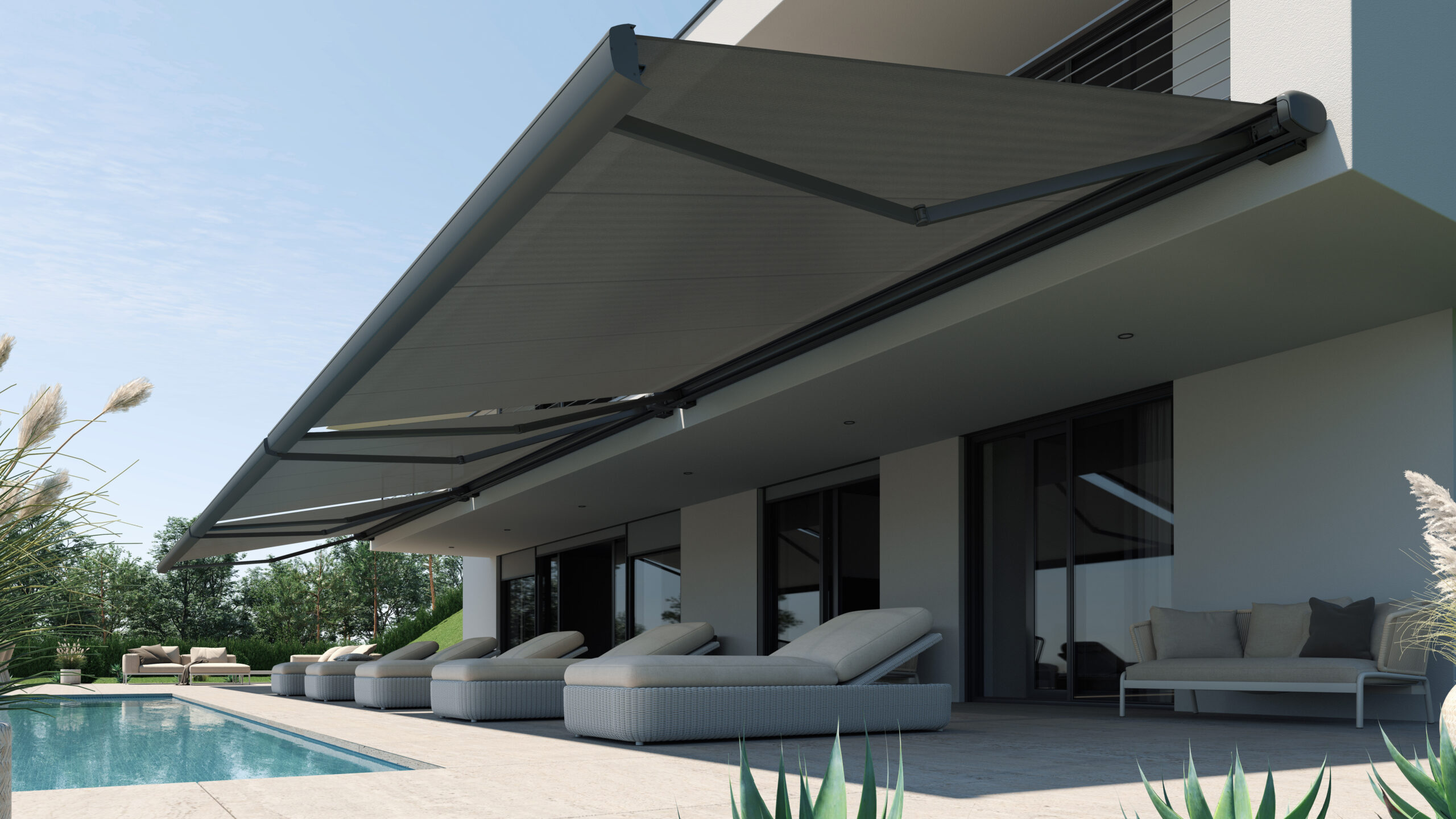 • Praktisch: Auch als Reihenanlage mit zwei oder mehr individuell steuerbaren Markisen montierbar